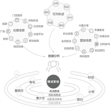 跟踪客户购物数据、与消费者及时互动、 掌握消费者决策变化、给消费者个性化建议